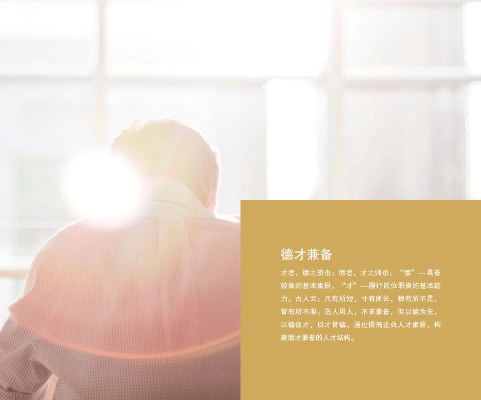 人才理念是企业重视人才、爱护人才、合理开发人才、使用人才、留住人才、提升人才的指导思想和价值观念。 优秀的人才是实现企业战略目标的基础,是企业持续发展的动力。公司以科学的人才培养方法、有效的激励机制、公平的竞争平台、广阔的事业发展空间广纳良才,在人力资源“选、育、用、留”方面加大力度,不断优化人员素质结构。让每一位员工都能在集体中充分体现自我价值,达到个人生涯规划与企业发展目标的最大契合,员工与企业共同的成长。